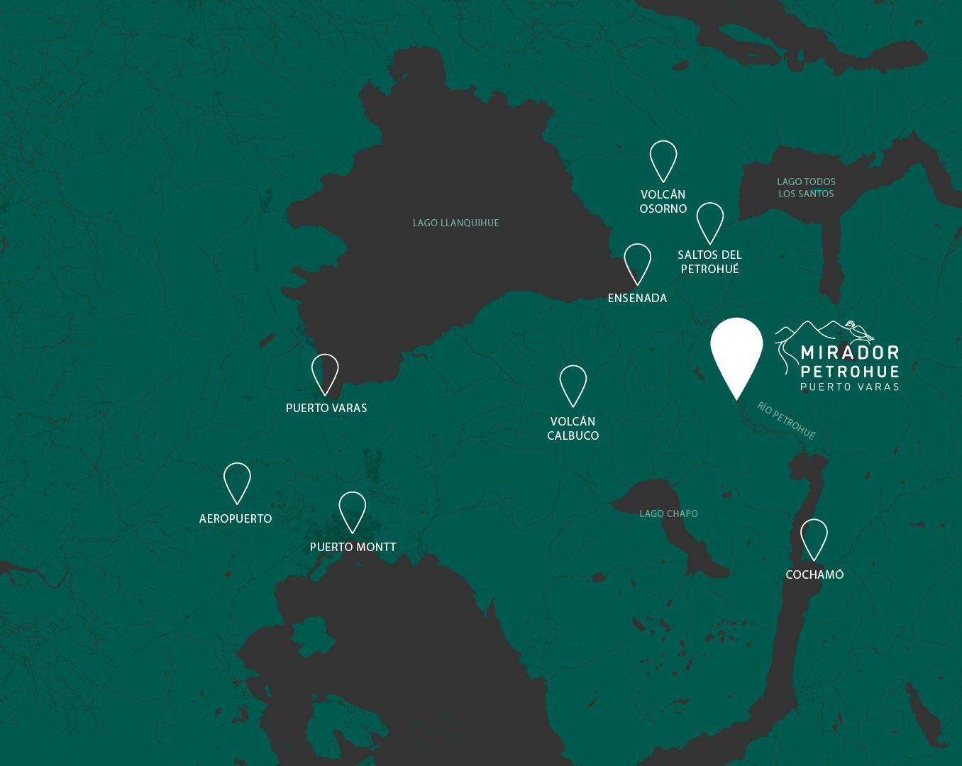 Mirador Petrohué es el punto exacto donde puedes estar rodeado de un majestuoso bosque y del impresionante río Petrohué, pero a la vez estar a 50 minutos del centro de Puerto Varas y 1 hora 10 minutos de Puerto Montt y su aeropuerto.